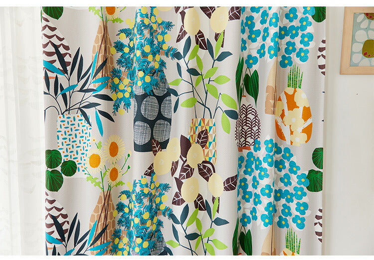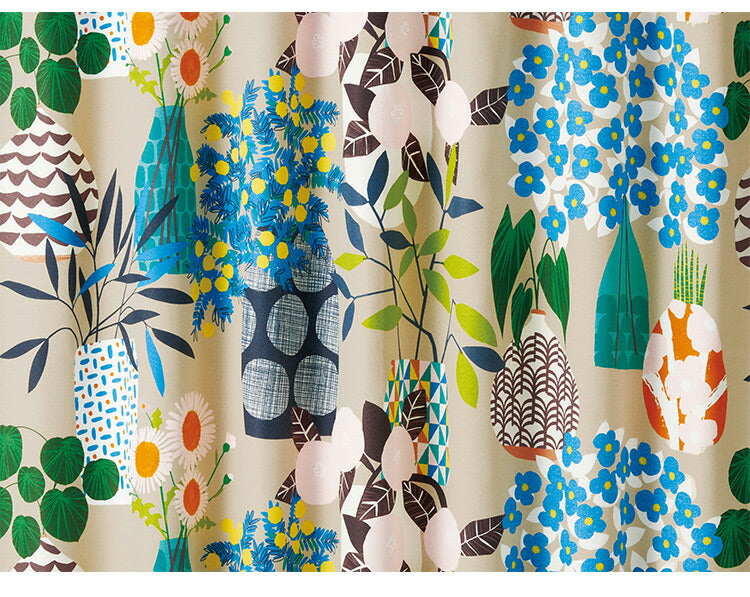 日本製 カーテン FLOWER POT フラワーポット DESIGN LIFE デザインライフ 1枚入 ウォッシャブル 洗える 形状記憶加工 北欧 おしゃれ(代引不可)