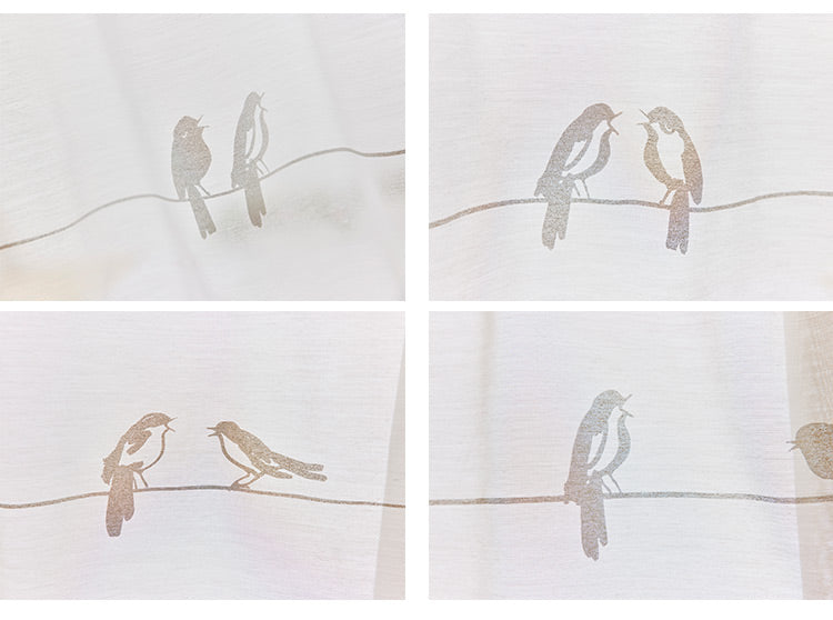 ドレープの『フルーツトリ』と同じ小鳥のモチーフをラッカーで表現しました。鳥をリンクさせたお勧めのコーディネートシアーです。
