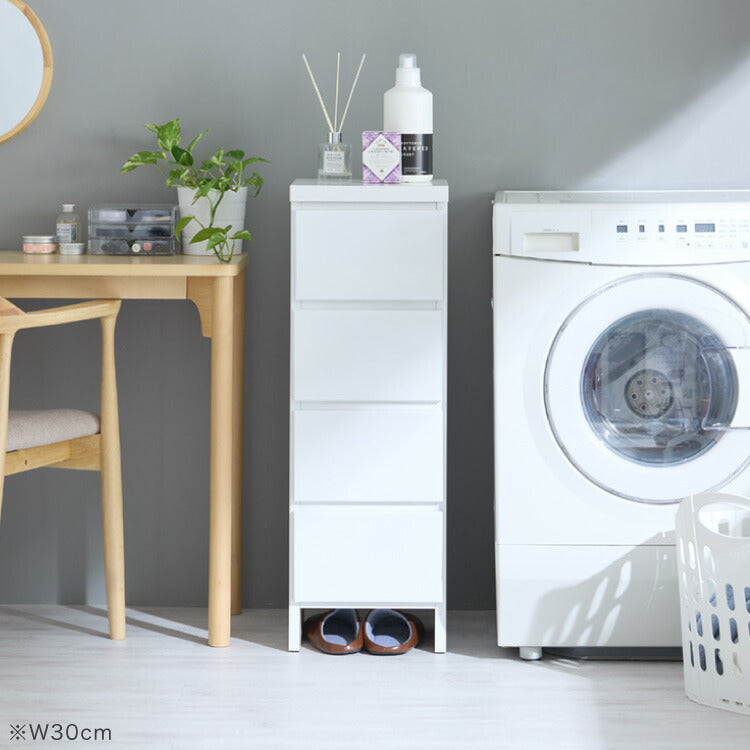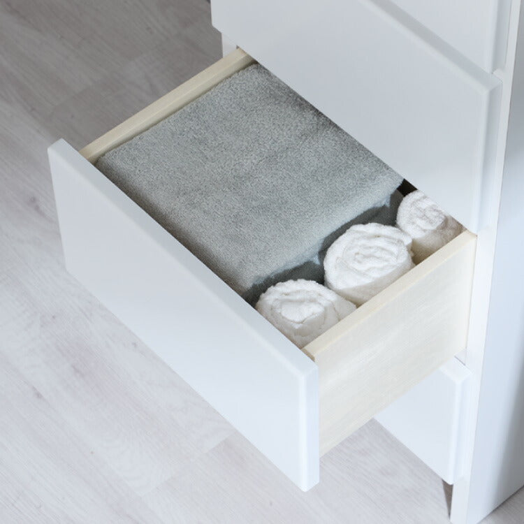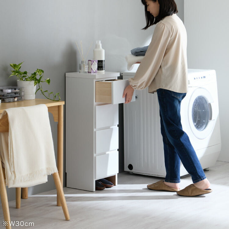 ランドリー収納 完成品 国産 幅35cm 薄型 ロータイプ 収納 隙間収納 ランドリーラック ストッパー付き引き出し オープン棚板 耐震ダボ チェスト 省スペース 隙間 大川家具(代引不可)