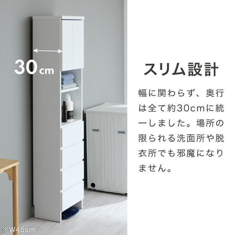 ・脱衣所や廊下など狭い空間で活躍する薄型ハイタイプのランドリー収納です。