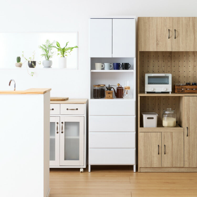 ランドリー収納 完成品 国産 幅55cm 薄型 ハイタイプ 収納 隙間収納 ランドリーラック ストッパー付き引き出し オープン棚板 耐震ダボ チェスト 省スペース 隙間 大川家具(代引不可)