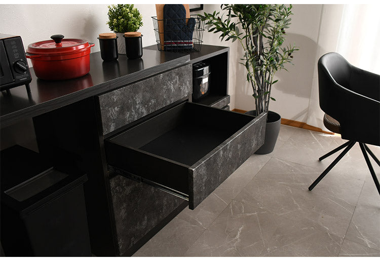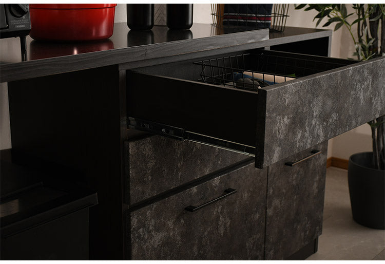 ・引出はフルスライドレール付きで奥の物も取り出しやすく開閉らくらく。