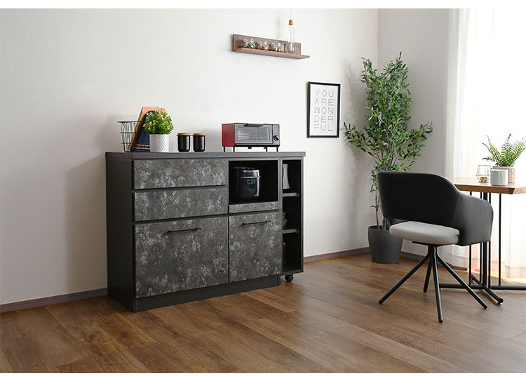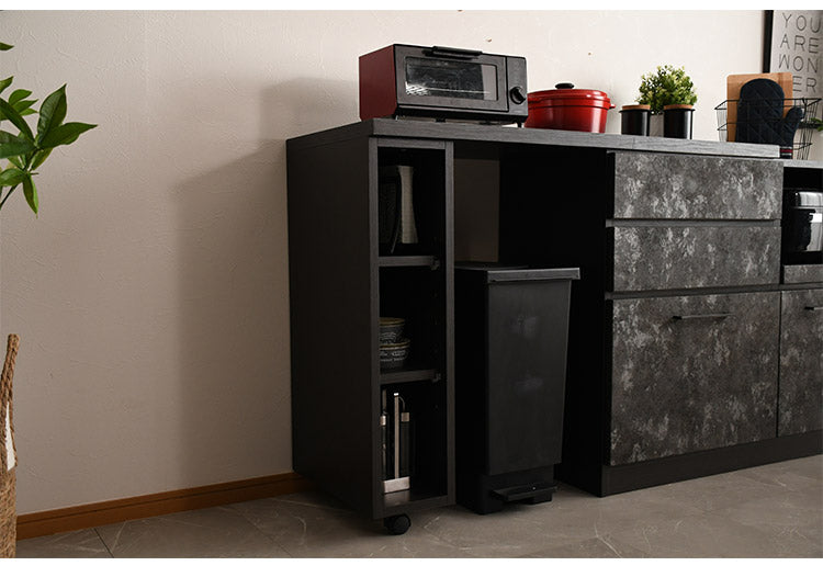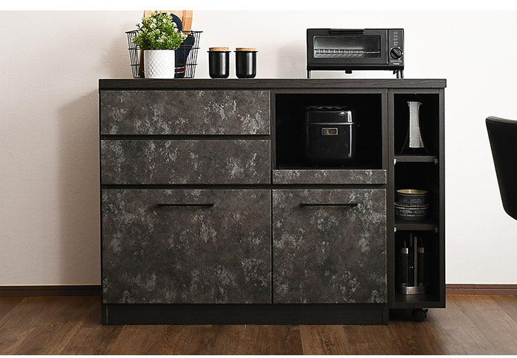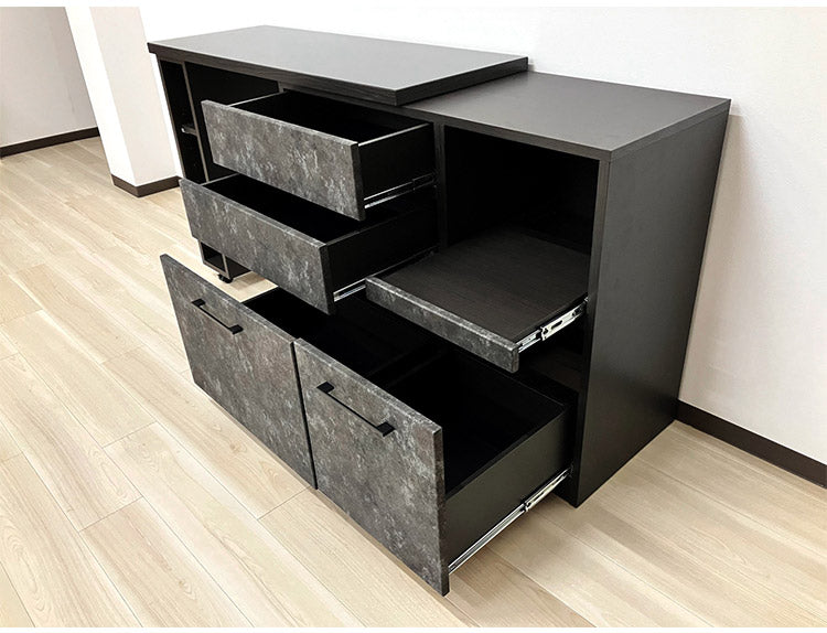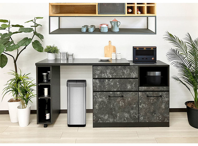 キッチンカウンター 幅120cm キッチンワゴン 収納 キッチン 伸縮可能 ロータイプ 日本製 お客様一部組み立て品 引き出し付き フルスライドレール(代引不可)