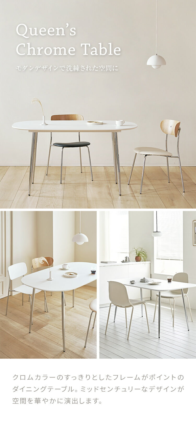 roomnhome ダイニングテーブル 幅120cm 140cm 丸型 ホワイト クイーンズ クロムテーブル 韓国インテリア センターテーブル テーブル リビングテーブル コーヒーテーブル