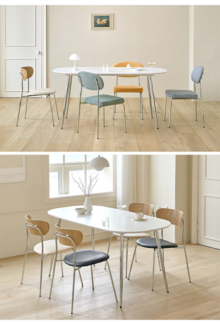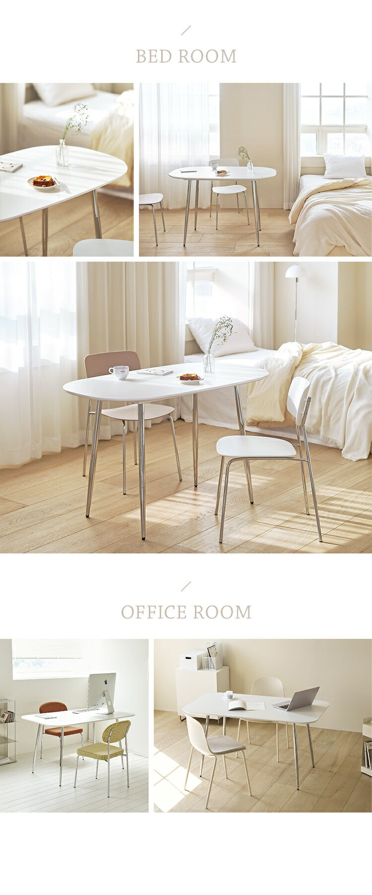 4つの角がラウンディング処理された長方形の天板で円形テーブルとは異なり、壁に貼り付けて使いやすく空間を活用するのに適しています。