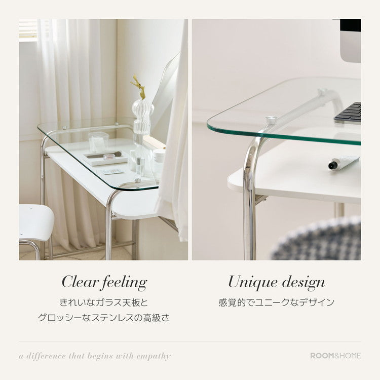 ROOM&HOME ぺプルガラスデスク 幅100cm