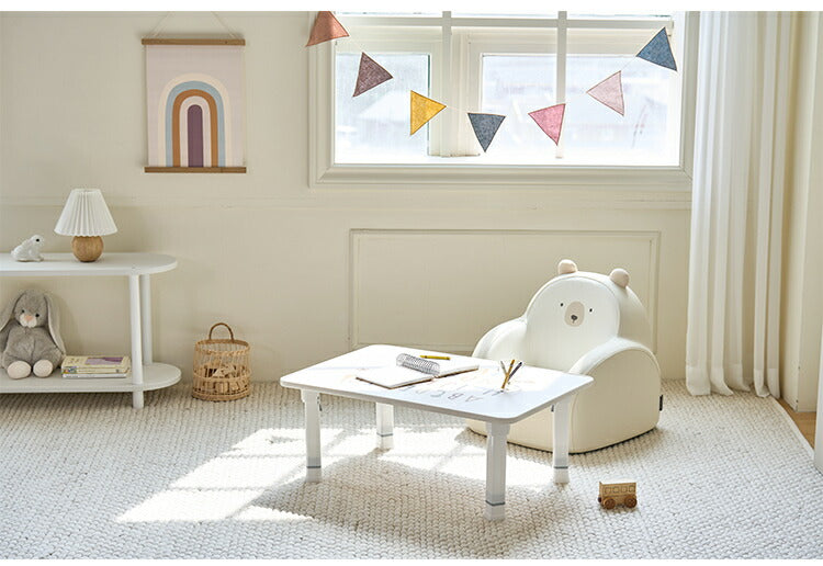 【高級素材で製作された韓国産テーブル】環境にやさしい1等級素材で作られ、丈夫です。また、丸く仕上げられた先にPVC素材のカバーを重ね、より安全に使えるように製作されました。