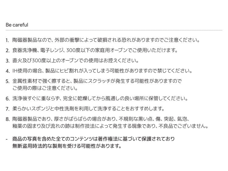 素材になる土と原料の配合から、成型、釉薬処理、焼きの過程がすべて韓国の職人の手によって行われ、有害物質不検出検査を通った安心できる商品でございます。