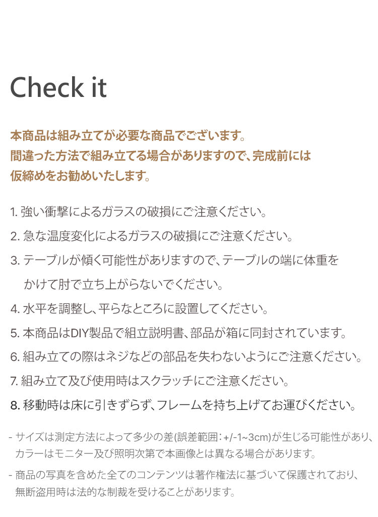 ガラスには強化ガラス、そして8mmという極厚に加え、熱処理を施すことで傷つきにくく、堅牢なガラスフレームとなっております。