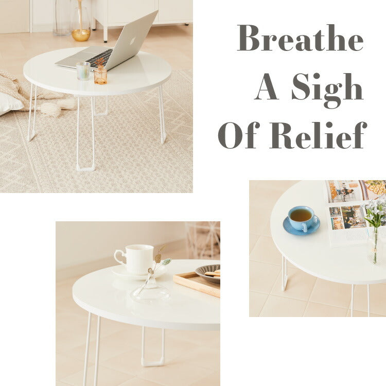 【roomnhome×リコメン堂】センターテーブル 丸型 白 80cm 折りたたみ おしゃれ 韓国インテリア 耐荷重 約20kg ローテーブル【限定商品】かわいい シンプル インテリア モダン 北欧 一人暮らし(代引不可)