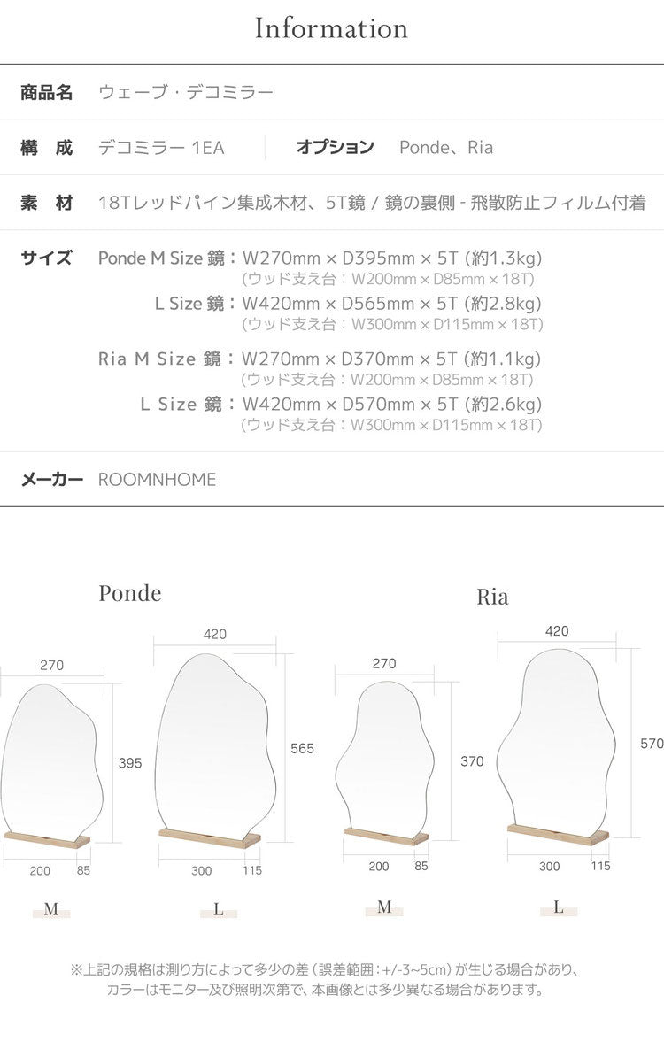 Roomnhome ウェーブデコミラー Mサイズ 鏡 ミラー 卓上ミラー 姿見 ウェーブミラー 変形ミラー ビーンズミラー メイクスペース ニュアンスミラー ドレッサー ノンフレームミラー ポンド(代引不可)
