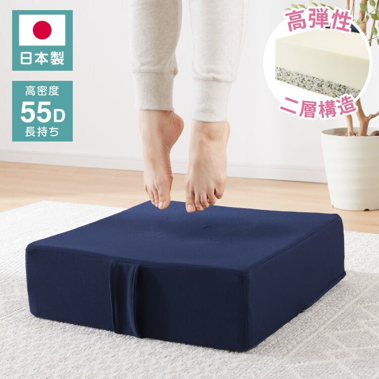 日本製 トランポリン ウレタン 55D クッション 50×50 厚さ15cm エクササイズ トランポリンクッション 高密度 高弾性 ダイエット オットマン 滑り止め シェイプアップ 無地 国産(代引不可)