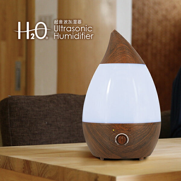 しずく型 超音波加湿器 木目調 1.6L LED付き 卓上 ミスト コンパクト アロマ対応 超音波 加湿器 冬 ディフューザー