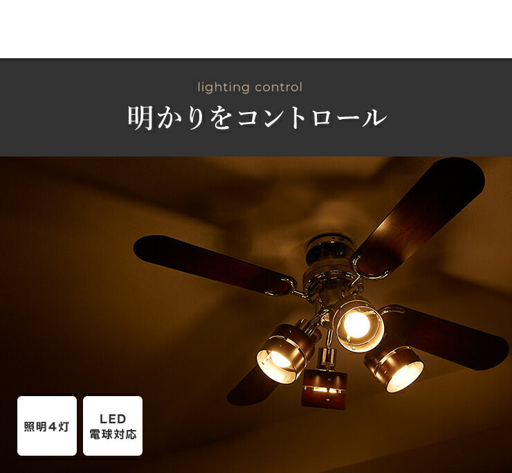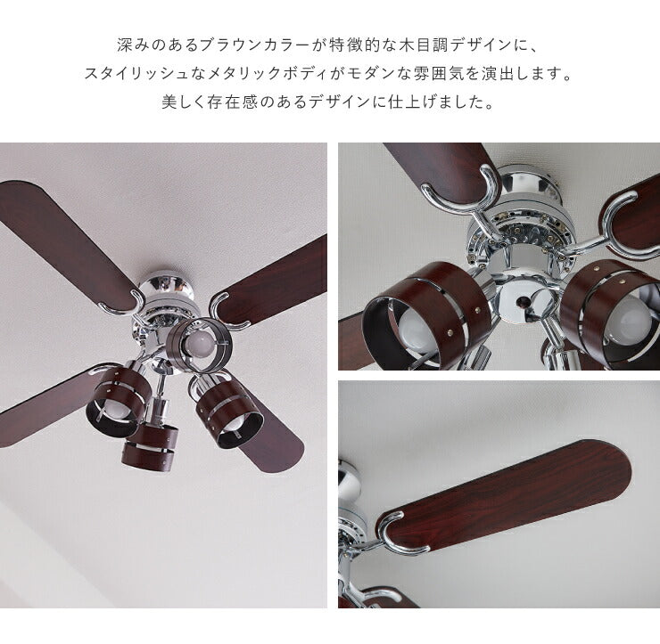 プライウッド 42インチシーリングファン リモコン付き メッキ シルバー おしゃれ ブラウン リモコン リビング