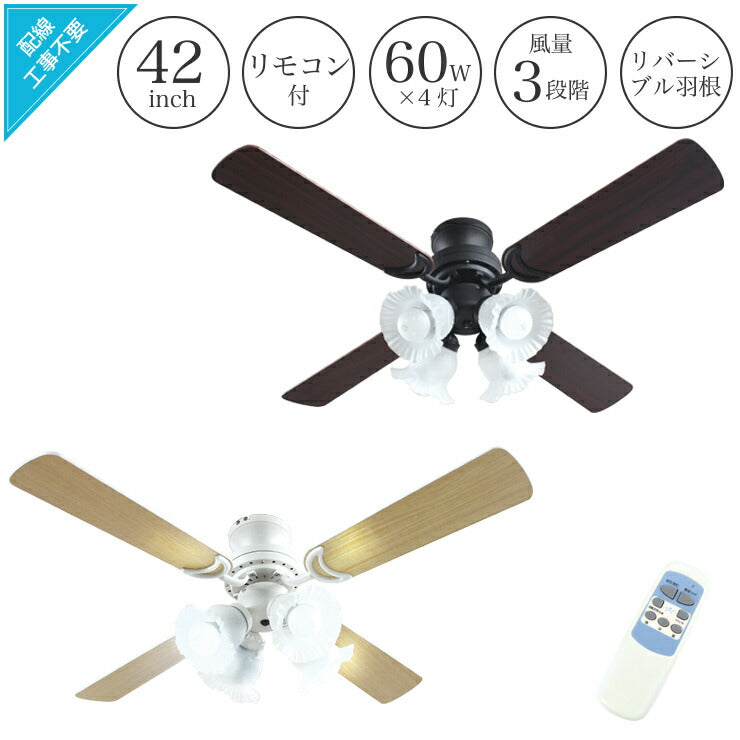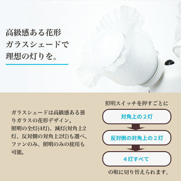 42インチ シーリングファン ライト ガラスシェード おしゃれ 4灯 工事不要 LED シーリングライト シーリングファン リモコン付き