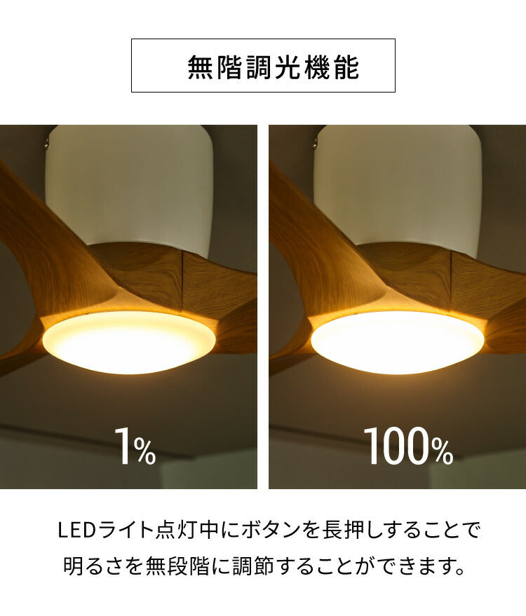 エコ、省エネ、羽根、調光、おしゃれ、モダン、シーリング、ナチュラル、ブラウン、LEDライト、天井照明、照明、ライト風量、調節