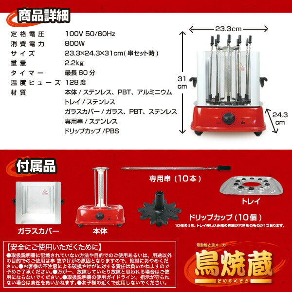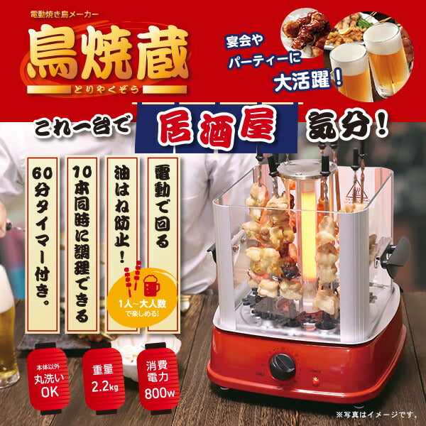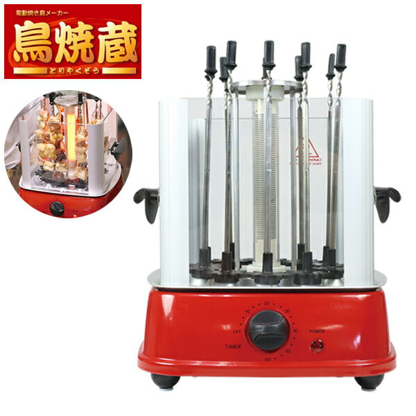 焼き鳥メーカー 鳥焼蔵 自動回転 卓上 家庭用 グリル 晩酌 油跳ね防止 タイマー付き ホームパーティー
