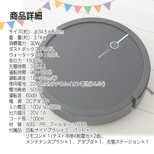 ロボット掃除機 水拭き 水拭きもできる2in1ロボット掃除機 I Cleeean リモコン付き モップ機能 落下防止センサー 掃除機 水拭きロボ 掃除 アイクリーン