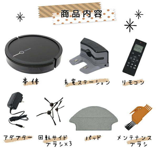 付属品:回転サイドブラシ×3、パッド×1、リモコン×1(テスト用ボタン電池1個)、