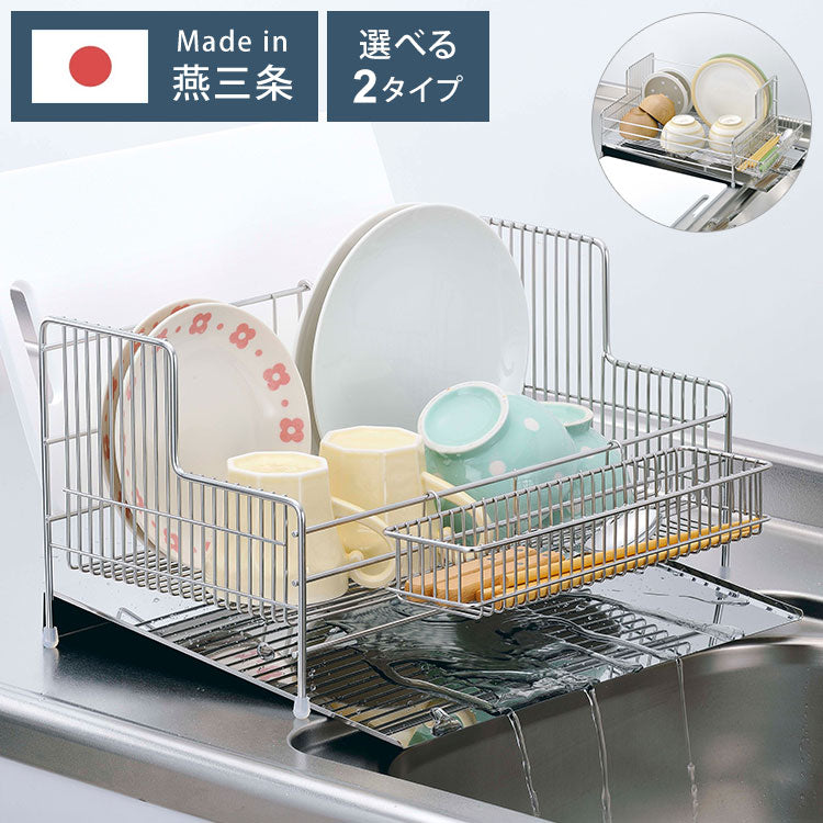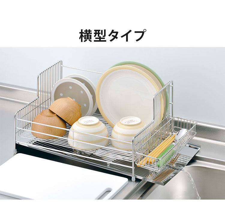 日本製 燕三条 水が流れる 多機能ステンレス製水切り 横型 縦型 選べる2タイプ 大容量 シンクサイド 水切りラック 水切りかご 水切りバスケット AK-081 ステンレス(代引不可)