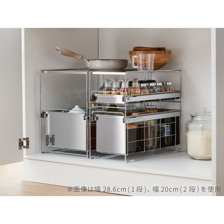 シンク下収納、キッチン収納、アイデア収納、すき間収納、隙間収納、シンク下、スライド収納、収納バスケット、調味料ラック、スパイスラック、ボトルラック、ストッカー、棚、ラック、洗面台下、コンロ下、鍋、なべ、フライパン
