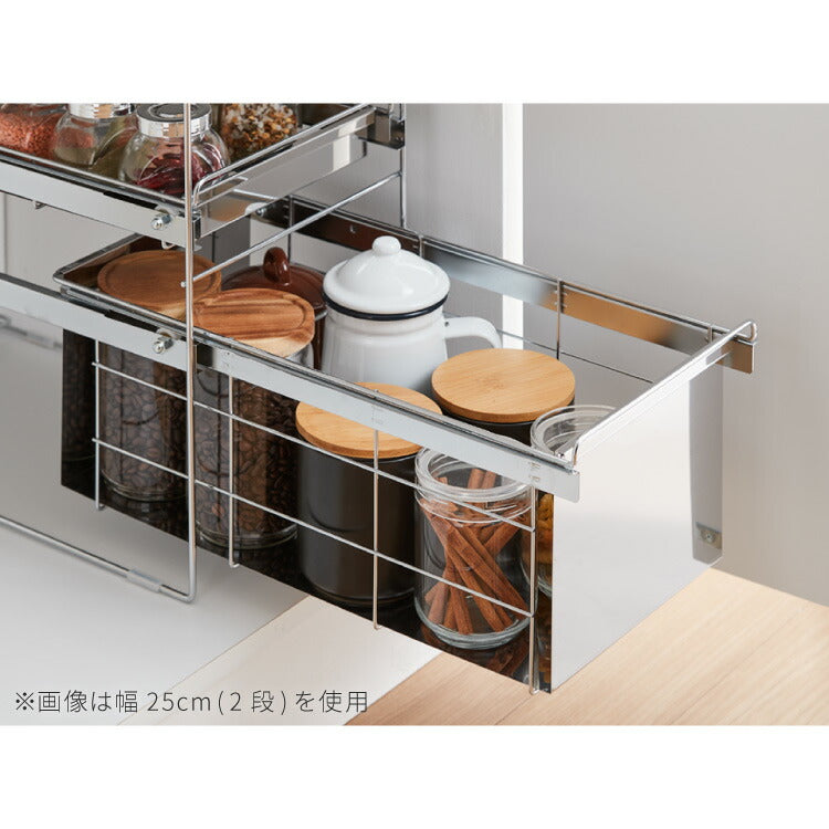 日本製 燕三条 シンク下 スムーズ引き出しラック 2段 幅20cm 頑丈 シンク下収納バスケット ステンレス製 シンク下収納 スライド ラック キッチン収納 引出し 隙間収納 すき間収納 おしゃれ(代引不可)