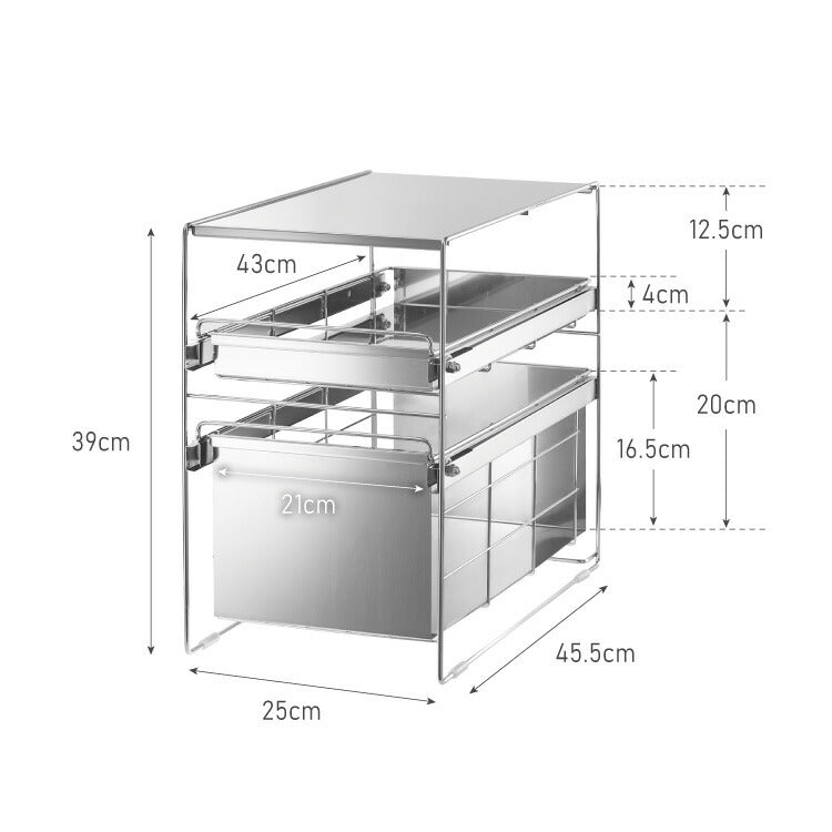 かご有効内寸:[上段]幅21×奥行43×高さ12.5cm、[下段]幅21×奥行43×高さ20cm(かご自体の高さは16.5cm)