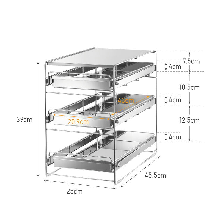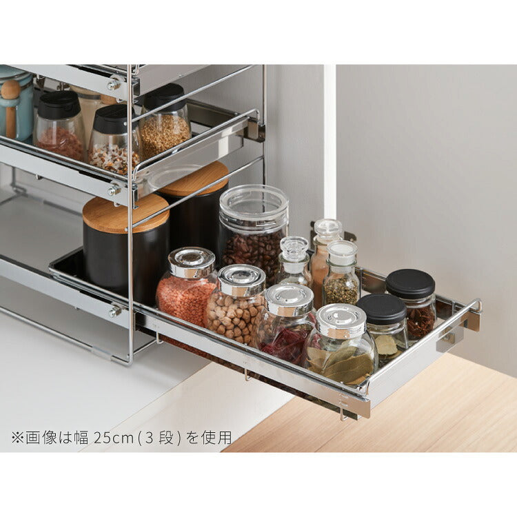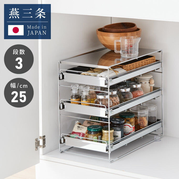 日本製 燕三条 シンク下 スムーズ引き出しラック 3段 幅25cm 頑丈 シンク下収納バスケット ステンレス製 シンク下収納 スライド ラック キッチン収納 引出し 隙間収納 すき間収納 おしゃれ(代引不可)