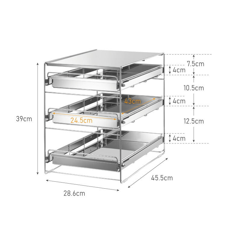 かご有効内寸:[上段]幅24.5×奥行43.1×高さ7.5cm、[中段]幅24.5×奥行43.1×高さ10.5cm、[下段]幅24.5×奥行43.1×高さ12.5cm