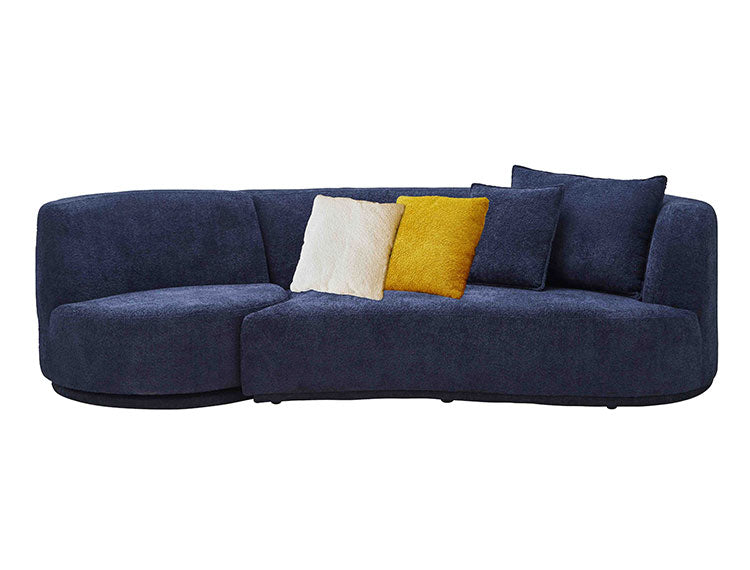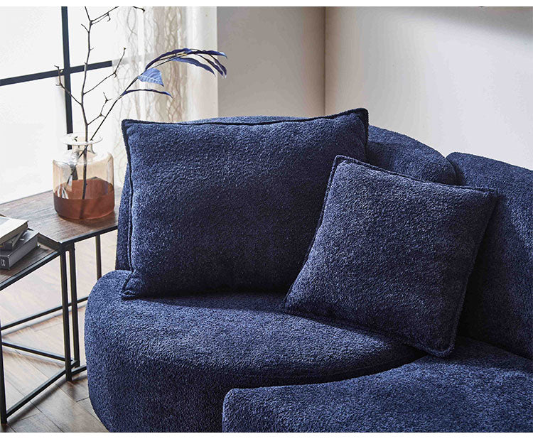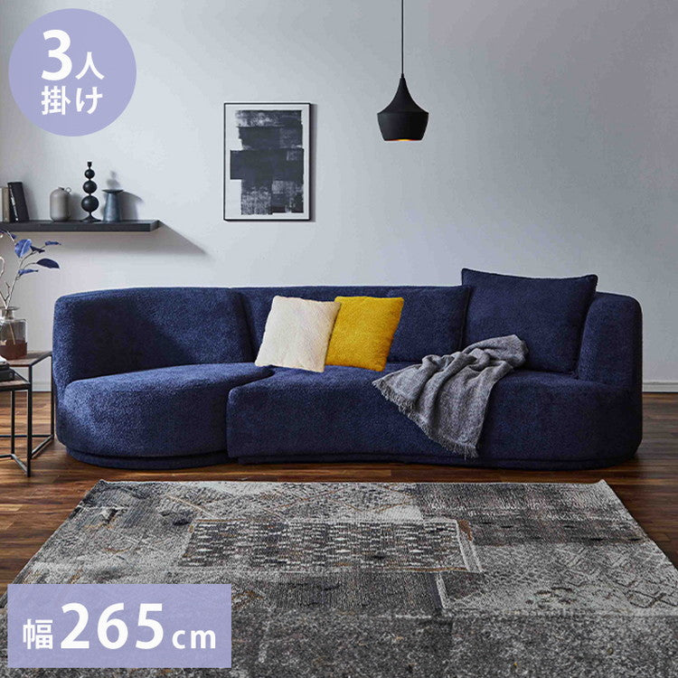 ソファ 3人掛け 幅265cm カウチソファ ブークレ生地 おしゃれ リビング ローソファ リラックスチェア ブルー チェア ウェーブ カーブ(代引不可)