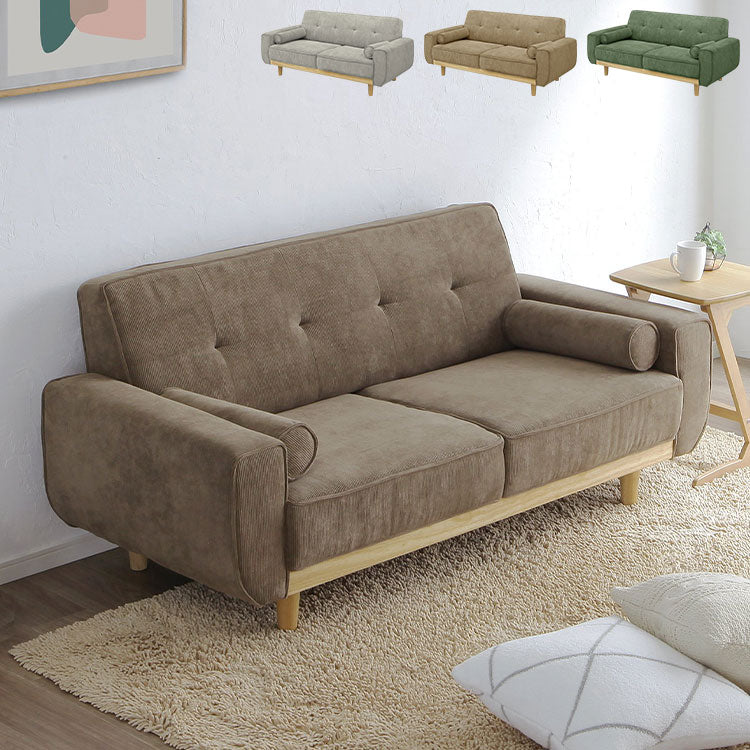 ソファ 2.5人掛け 幅160cm 円柱型クッション付き 肘あり 肘置きコーデュロイ おしゃれ 北欧 ローソファ 木目 脚 フロアソファ リビングソファー ソファー 新生活 2人掛け 3人掛け(代引不可)