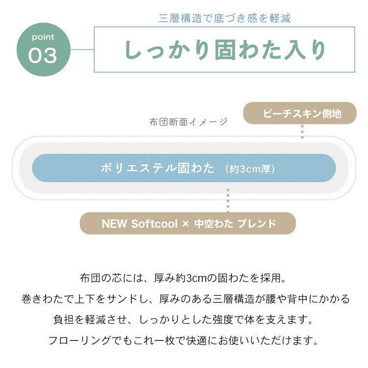抗菌防臭・防ダニ敷布団 セミダブル 120×210cm 清潔敷布団 NEW Softcool綿 固綿 ピーチスキン加工 敷布団 しきふとん 寝具 シンプル 布団 マットレス不要 敷き布団 布団 ふとん