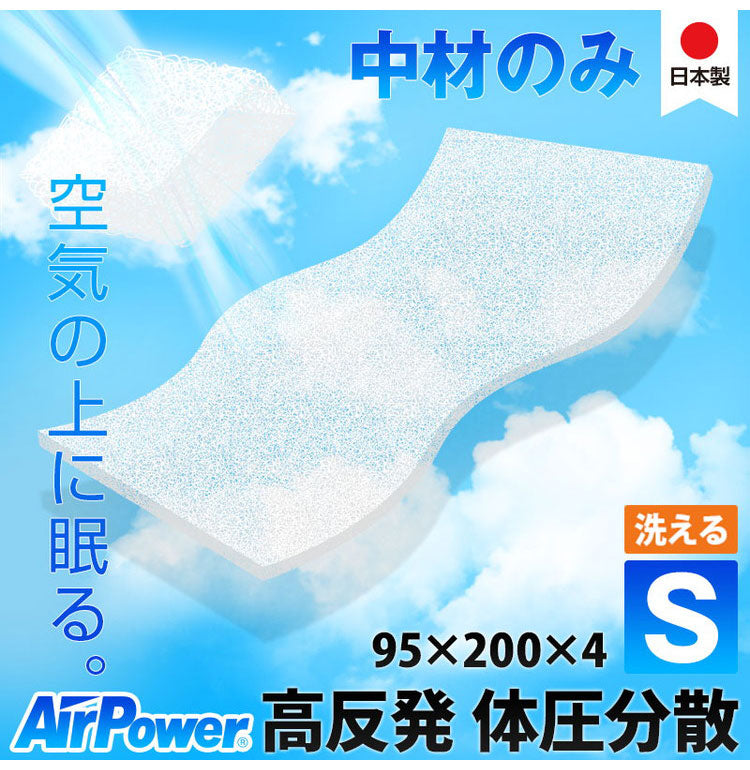 カバー無し中材のみ! 三次元網状繊維構造体 エアパワー 体圧分散 高反発 マットレス シングル 95×200×4cm 中材 日本製 寝返り 仰向け 横向き 腰痛 トッパー 材料?