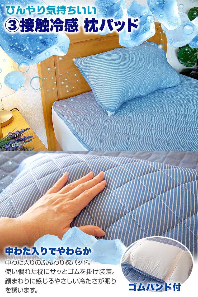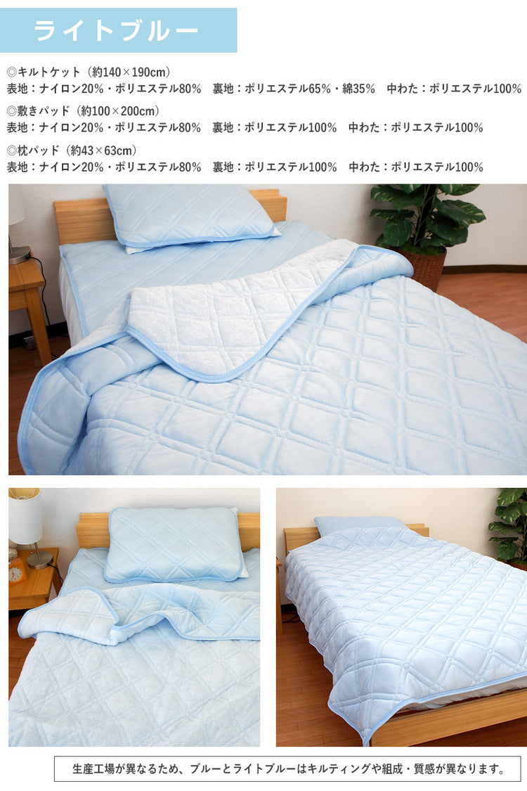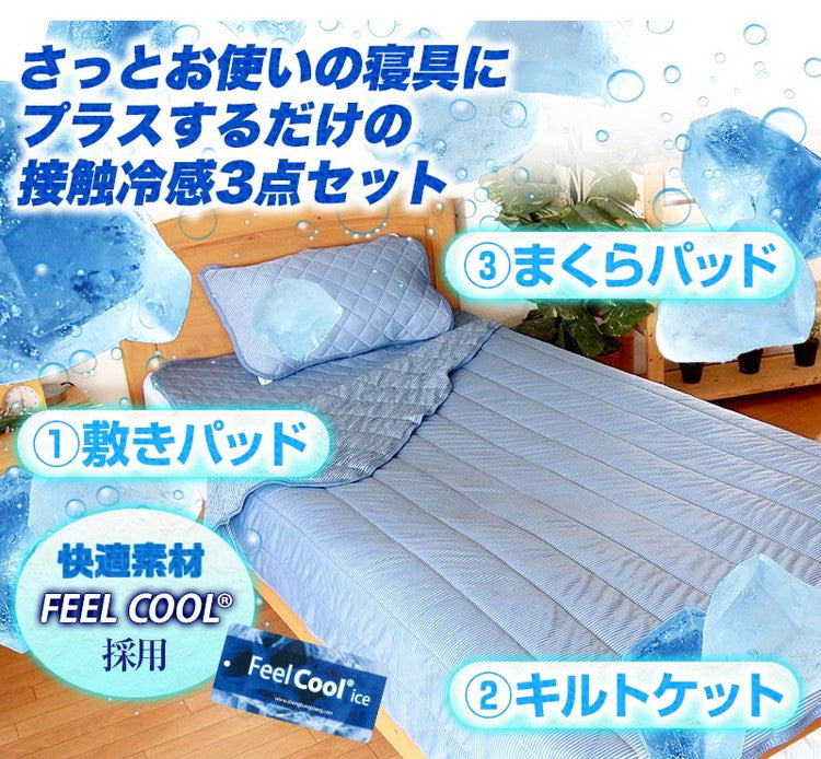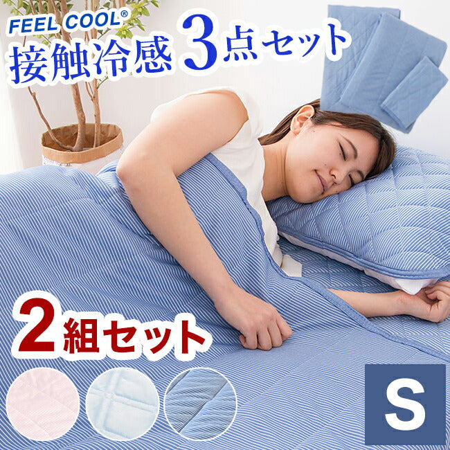 接触冷感 ひんやり布団3点セット 2組セット シングル さらっとクール 寝具 ふとんセット 布団セット 肌掛け 夏掛け 枕パッド 敷きパッド セット
