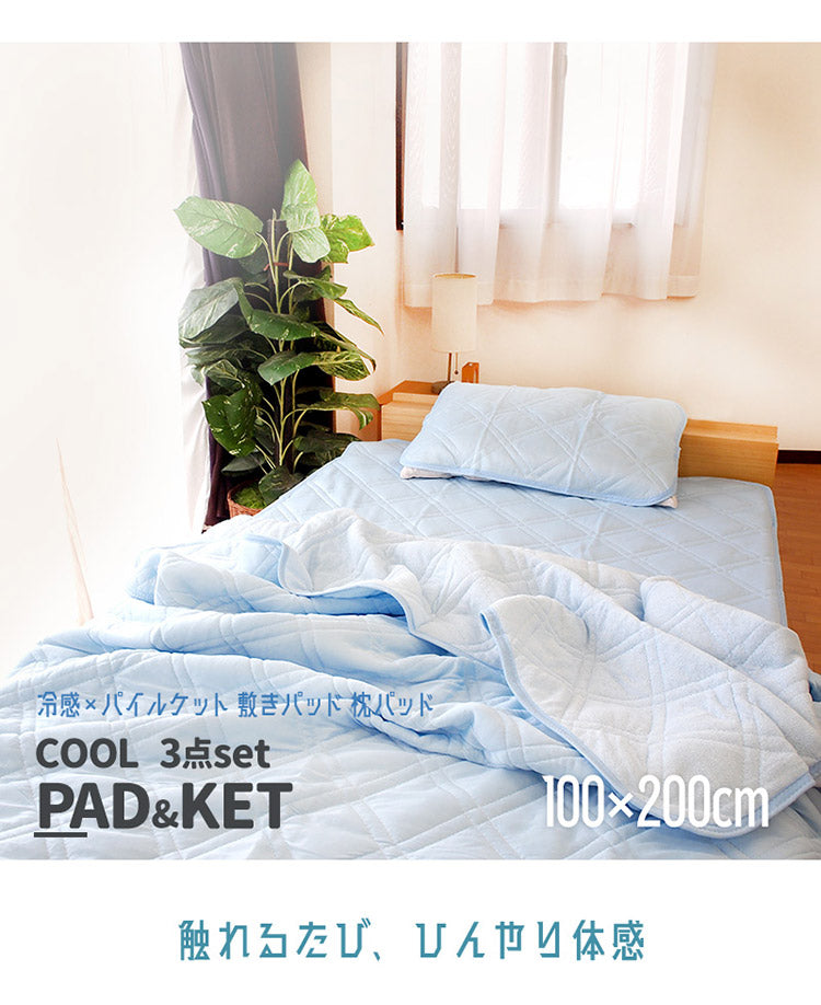 【2枚組】接触冷感 布団3点セット シングル クール&ドライ パイル 掛け布団 敷きパッド 枕パット ひんやり 冷たい 肌掛け布団 肌布団 寝具3点セット 洗える キルトケット 枕 夏ふとん 肌掛け 冷感