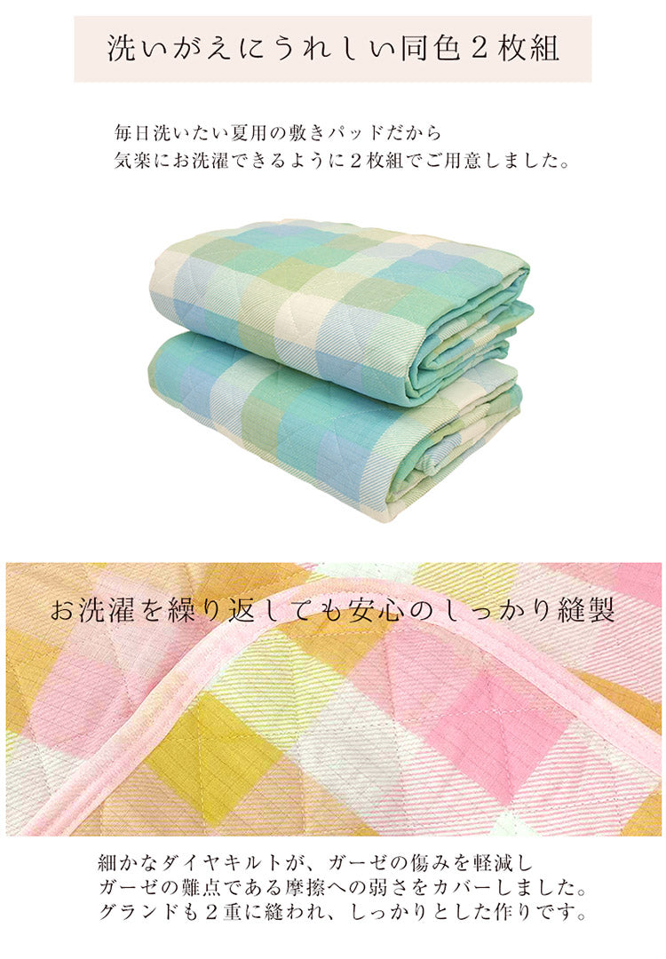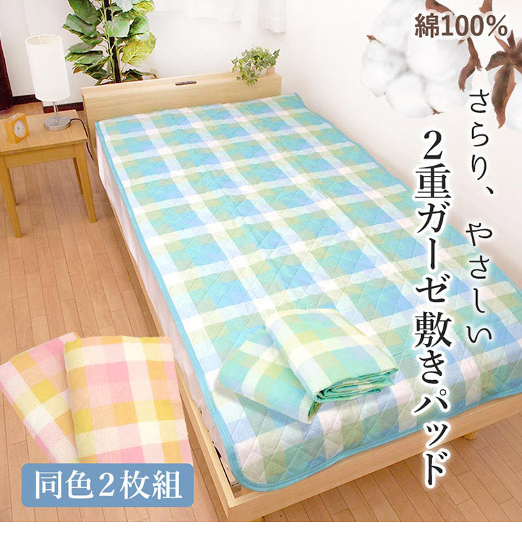 【同色2枚組】 洗える さらさら ガーゼ 綿100% 2重 ガーゼ 敷きパッド シングル 敷きパット ベッドパット ベッド シンプル 敷パッド かわいい 子供 女性 女の子 男の子 可愛い おしゃれ 北欧