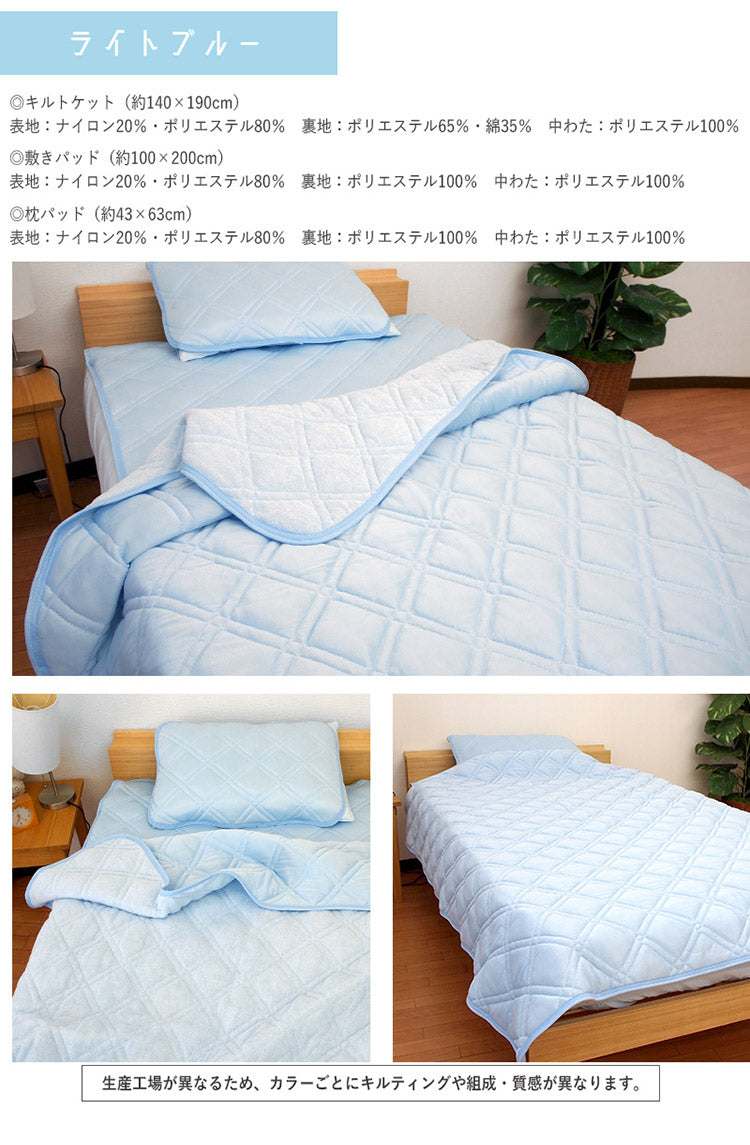 接触冷感 布団3点セット シングル クール&ドライ パイル 掛け布団 敷きパッド 枕パット ひんやり 冷たい 肌掛け布団 肌布団 寝具3点セット 洗える キルトケット 枕 夏ふとん 肌掛け 冷感