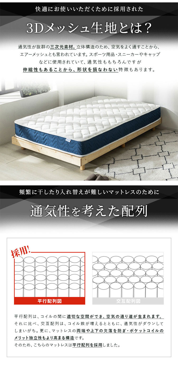 トリプルエッジサポート コイルマットレス 厚み20cm マットレス ポケットコイルマットレス シングル ニット生地 3Dメッシュ生地 ベッドマットレス ベッドマット 寝具 布団 通気性 新生活