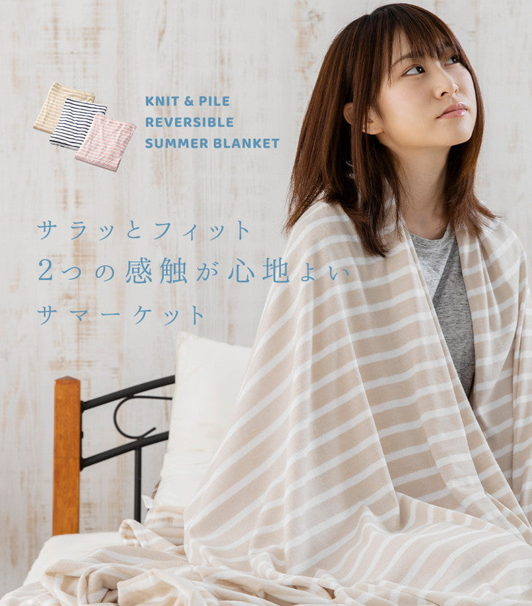 やわらかコットンニット ブランケット リバーシブル シングル 140×190cm 天笠ニット調 シンカーパイル サマーケット ケット ブランケット 掛け布団 毛布 洗濯 洗える 洗濯機 吸湿性