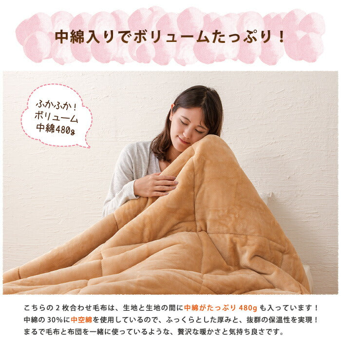 2枚合わせ毛布 中綿入り セミダブル マイクロファイバー あったか 掛け布団 毛布 布団 掛布団