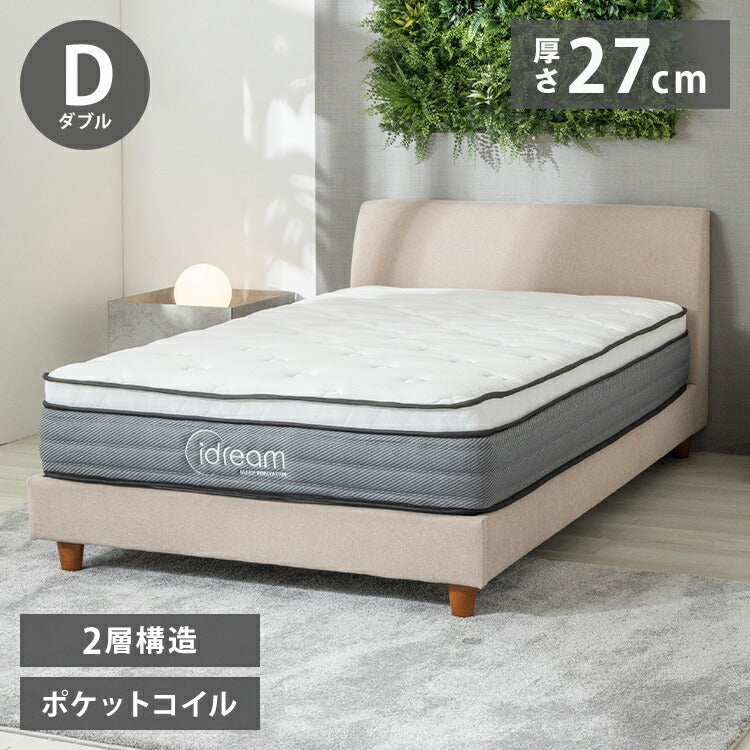 ダブルレイヤー ポケットコイルマットレス 極厚27cm ダブル 2層構造 高密度コイル 圧縮梱包 3Dメッシュ ベッドマットレス ダブルレイヤー 通気性 ベッドマット 寝具 高密度 コイルマットレス