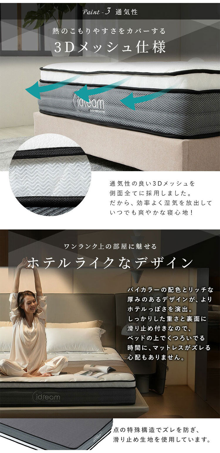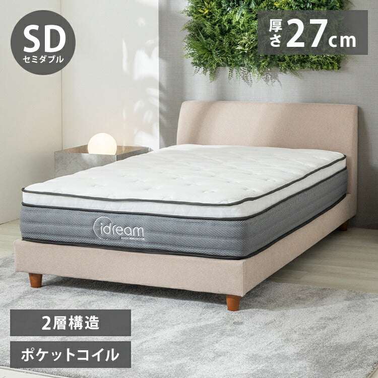 ダブルレイヤー ポケットコイルマットレス 極厚27cm セミダブル 2層構造 高密度コイル 圧縮梱包 3Dメッシュ ベッドマットレス ダブルレイヤー 通気性 ベッドマット 寝具 高密度 コイルマットレス