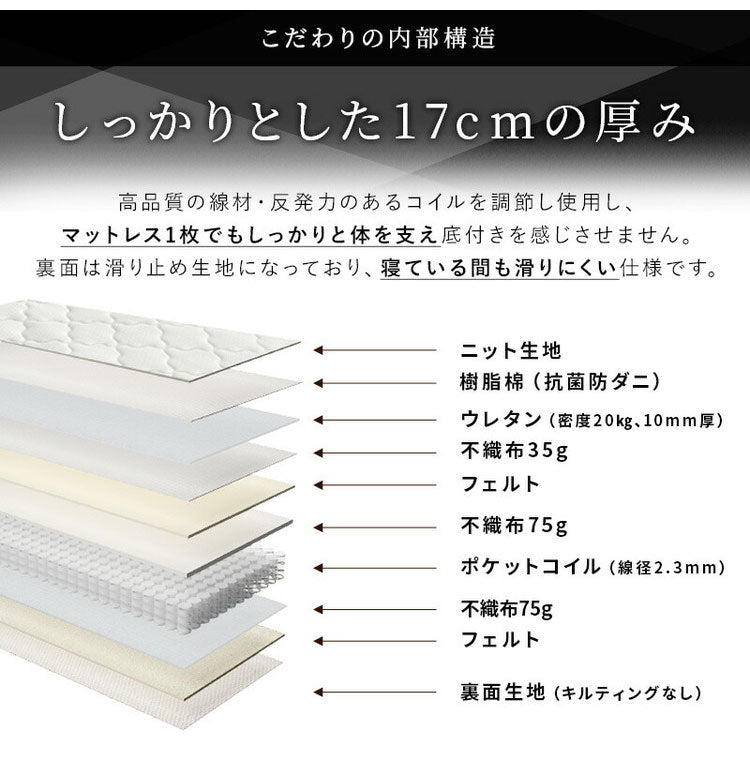 厚み17cm 3つ折りポケットコイルマットレス シングル ニット生地 3Dメッシュ生地 三つ折り ベッドマットレス ベッドマット 寝具 布団 折りたたみ 3つ折り 通気性 マットレス 高密度