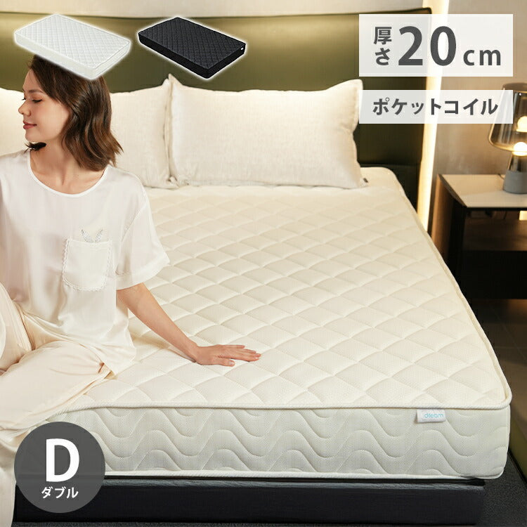 トリプルエッジサポート付き 厚み20cm マットレス ポケットコイルマットレス ダブル ニット生地ベッドマットレス ベッドマット 寝具 布団 体圧分散 ホワイト ブラック コイルマットレス