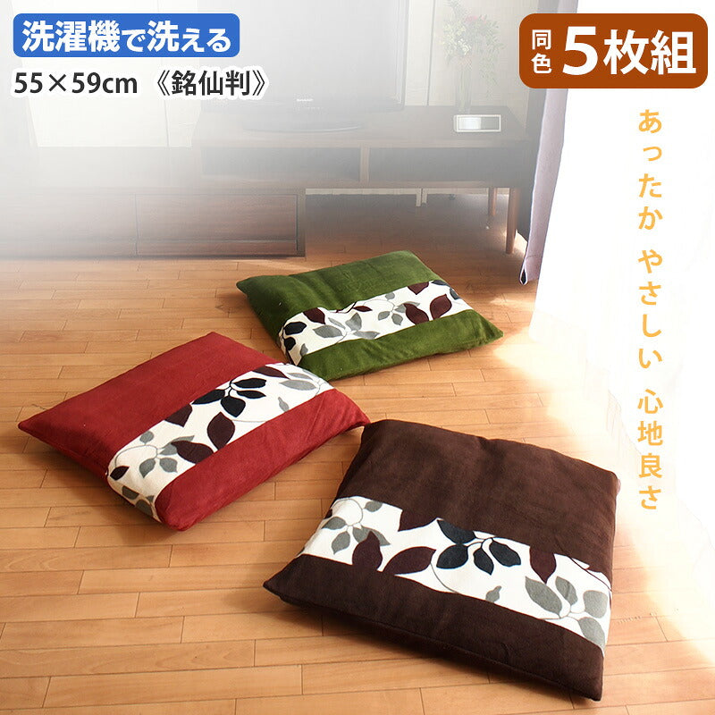 同色 5枚組 ふわふわ 座布団カバー フリース おしゃれな 洗える クッションカバー 55×59 リーフ柄 北欧風 和洋 u571060
