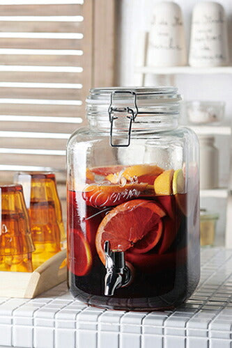 ガラス製のためアルコール度数が高いドリンクでも使用可能。蓋は密閉性が高く移動時も安心。コックをひねるだけで簡単に注げるのでウェルカムドリンクとしての設置にも!コック部は取り外して洗浄ができます。