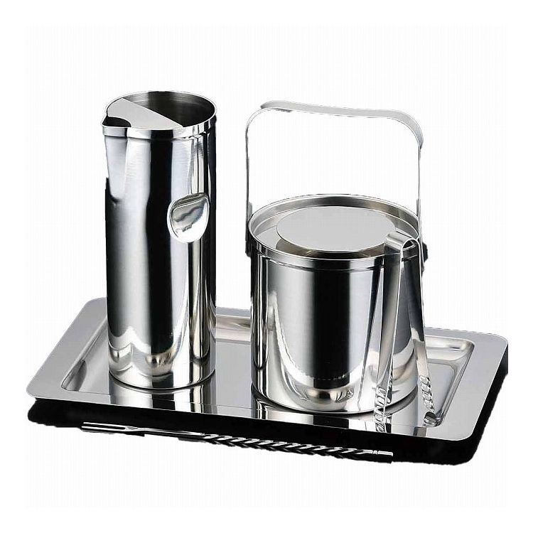 お手入れのしやすいステンレス製。使いやすく上質なアイテムです。様々なアイテムと相性の良いシンプルなデザイン。晩酌からパーティーシーンまで幅広く活躍します。持ち運びに便利なトレー付。