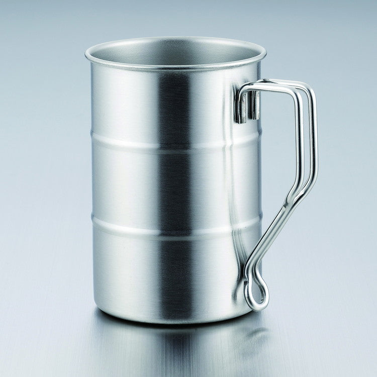 まるで小さなドラム缶みたいなステンレス製マグ!持ち手の下部は溶接していないので、ベルトに上から通したり、ひっかけて吊り下げることができます。機能的でアウトドアにもお勧めの一品。