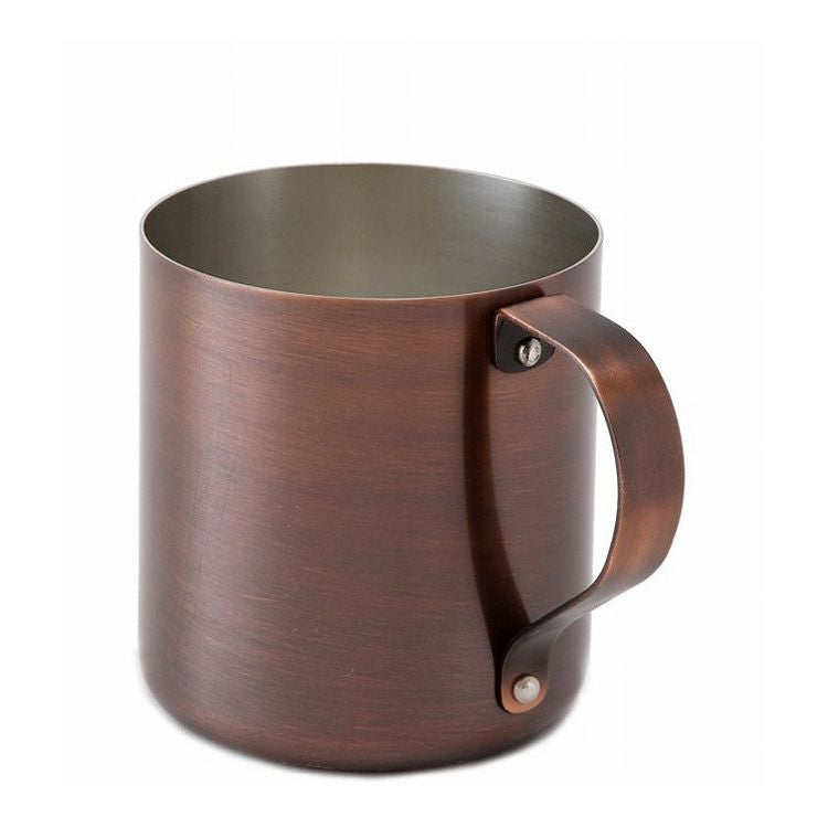 経年を経た銅製品のような色合い。手作業で色づけしたアンティーク仕上げ。キンと冷えた飲み物を注ぐと外面に水滴がついて冷たさが一目でわかります。飲むときに唇から伝わる冷たさが、更に冷えた心地を増してくれます。ビールカップとしてはもちろん、ライムなどの柑橘を添えたサワーも爽快さがあります。