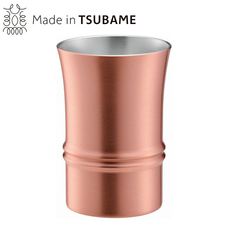 銅板の重厚感があります。外面は落ち着きのある艶消し仕上げ。熱伝導率に優れた銅製で、冷たさが伝わります。金物の町として知られる「新潟県・燕市」のタンブラー。竹の節目のような和デザインです。